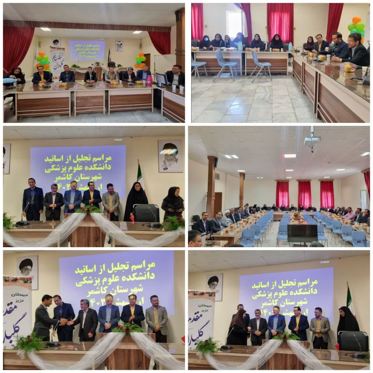 همزمان با فرارسیدن 12 اردیبهشت مصادف با شهادت استاد شهید مطهری و آغاز هفته گرامیداشت مقام استاد و معلم، با حضور دکتر محمدجواد یزدانی سرپرست دانشکده علوم پزشکی و شبکه بهداشت و درمان کاشمر و دکتر فرزاد رحمانی معاون آموزشی_پژوهشی، دکتر مهری السادات ثمره موسوی معاون دانشجویی_ فرهنگی دانشکده، دکتر اله زاده رییس بیمارستان حضرت ابوالفضل(ع) از اساتید گرانقدر دانشکده علومپزشکی کاشمر در محل سالن اجتماعات آل احمد بیمارستان حضرت ابوالفضل(ع) این شهرستان، تجلیل و قدردانی شد.