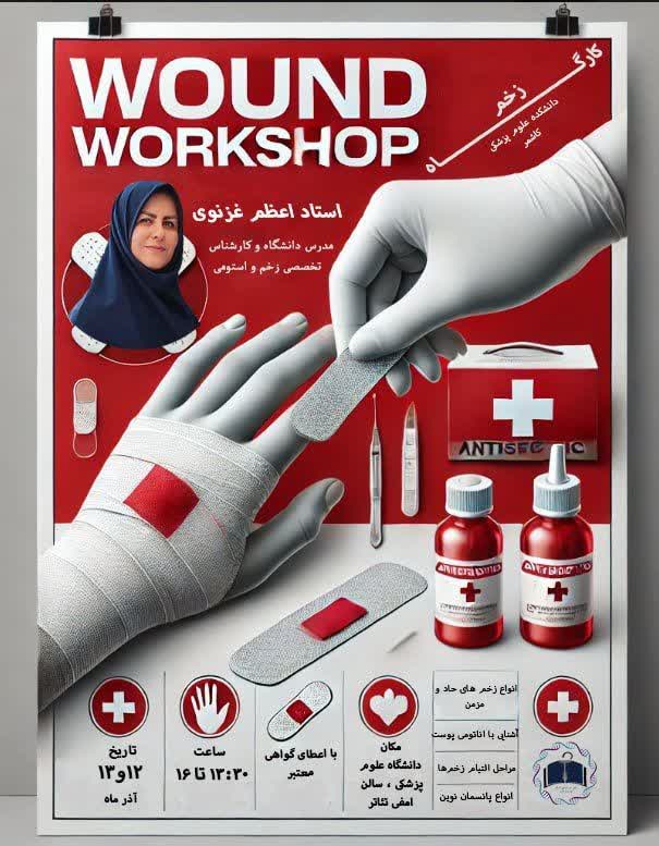 کارگاه مدیریت زخم در تاریخ ۱۲ و ۱۳اذرماه ۱۴۰۳با همت انجمن علمی دانشجویی دانشکده و همکاری معاونت آموزشی با استقبال گسترده دانشجویان دانشکده علوم پزشکی کاشمر و سایر دانشگاه ها با تدریس سرکار خانم غزنوی برگزار شد.