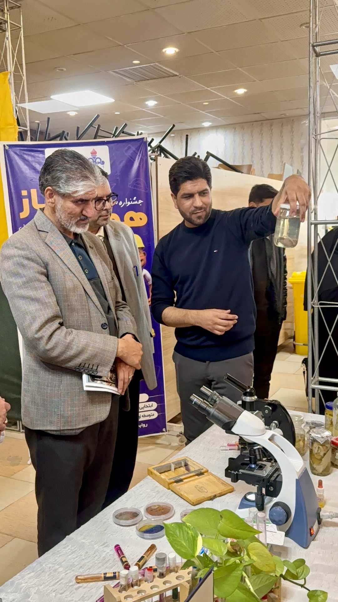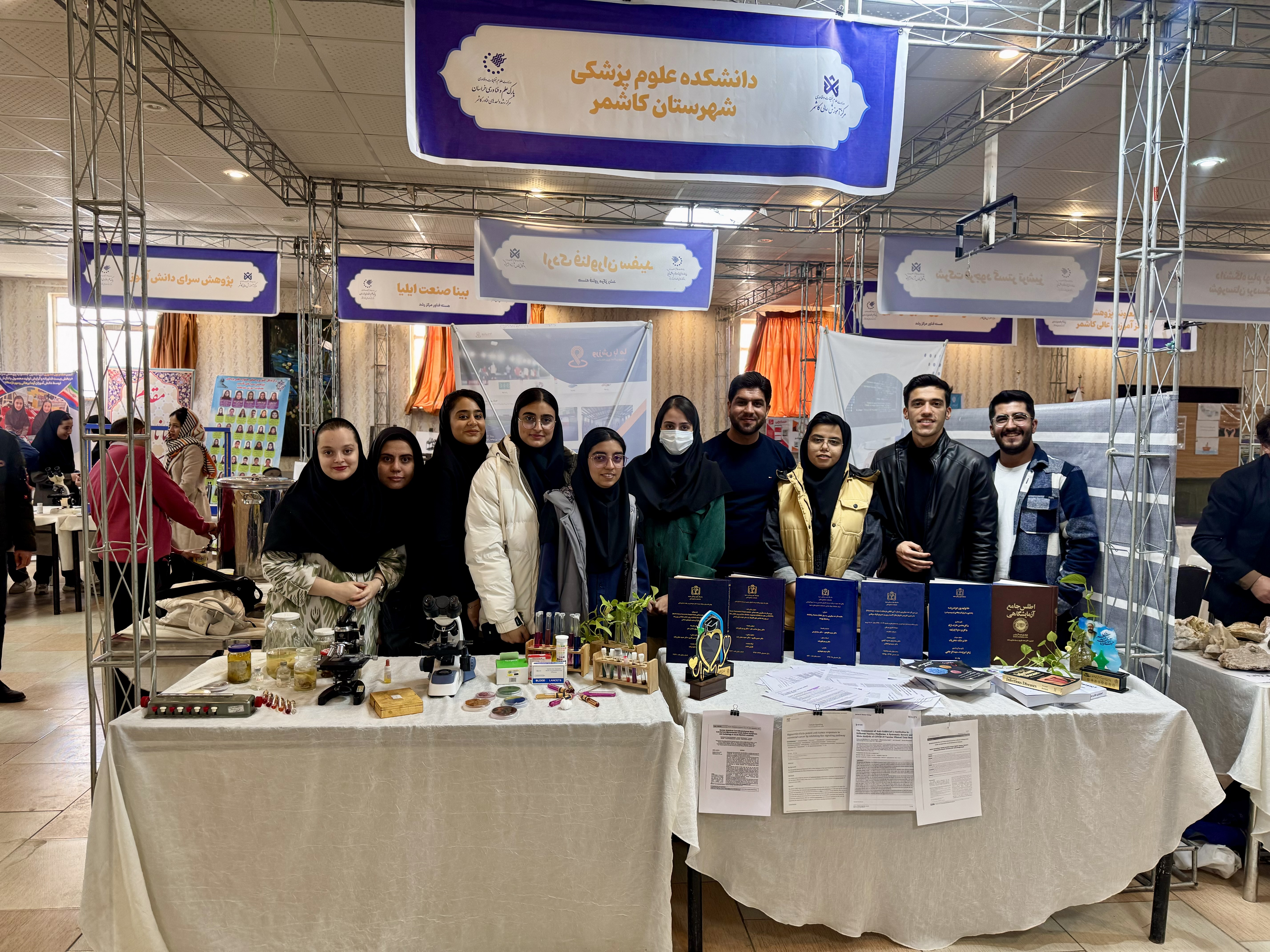 با توجه به راه اندازی نمایشگاه هفته پژوهش سال 1403 به همت مرکز آموزش عالی کاشمر و اختصاص دادن غرفه به دانشکده علوم پزشکی کاشمر، محمد خانی عشرت آبادی مدیر پژوهشی دانشکده با همکاری بی نظیر دانشجویان علوم آزمایشگاهی و محمدرضا دشتی عضو هیئت علمی ، غرفه پژوهش دانشکده را در این نمایشگاه راه اندازی و دایر کردند. به گزارش روابط عمومی دانشکده، آقای محمد خانی عشرت آبادی اظهار داشت، از غرفه دستاوردهای پژوهشی دانشکده علوم پزشکی کاشمر در نمایشگاه هفته پژوهش ، پژوهشگران، دانشجویان، اعضای هیأت علمی و سایر عموم بازدید نمودند. همچنین در این حین دکتر حجت الله شریعتمداری فرماندار کاشمر نیز از این غرفه بازدید و ضمن ابرازی خرسندی ، آرزوی موفقیت های پژوهشی بیشتری را نمود.
