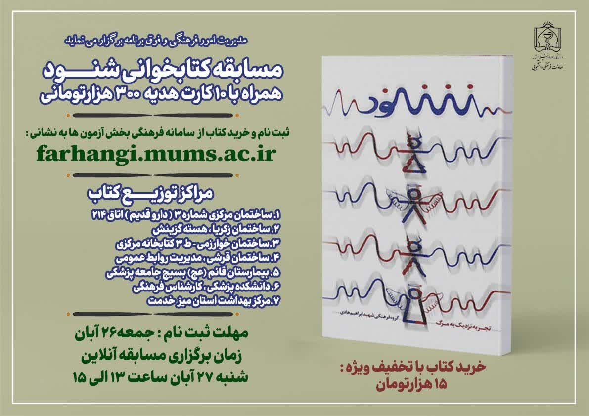 اطلاعیه 24 آبان 1402 امتیاز: ( 0 Rating ) اعلام زمانبندی مسابقه آنلاین کتابخوانی شنود امتیاز کاربران لطفا رای دهید رای 1 رای 2 رای 3 رای 4 رای 5 مسابقه کتابخوانی شنود شنبه 27 آبان از ساعت 13 الی 15 در سایت www.farhangi.mums.ac.ir برگزار می شود. 24 آبان 1402 بازدید: 46 امتیاز: ( 0 Rating )
