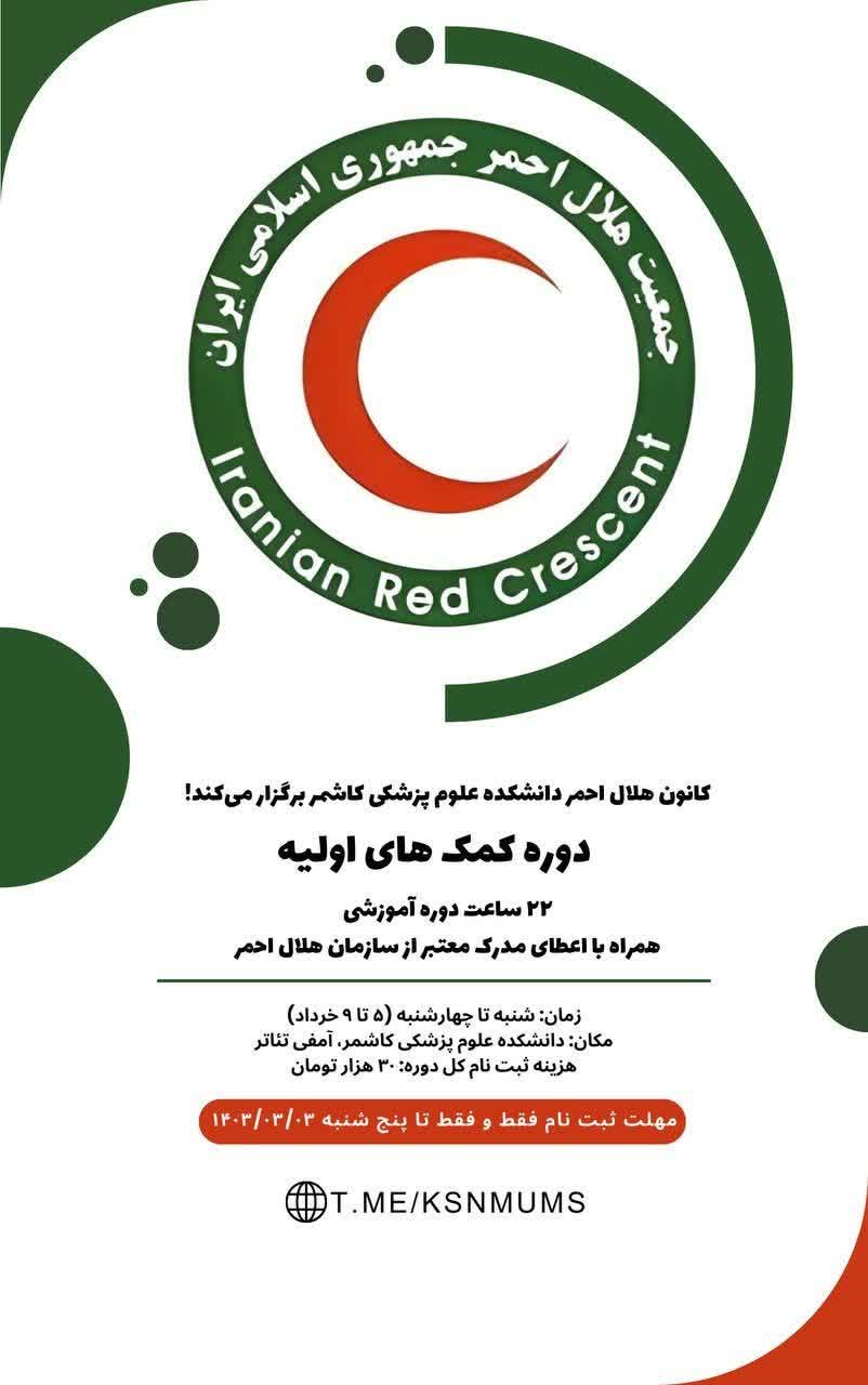 کانون هلال احمر دانشکده علوم پزشکی کاشمر برگزار میکند