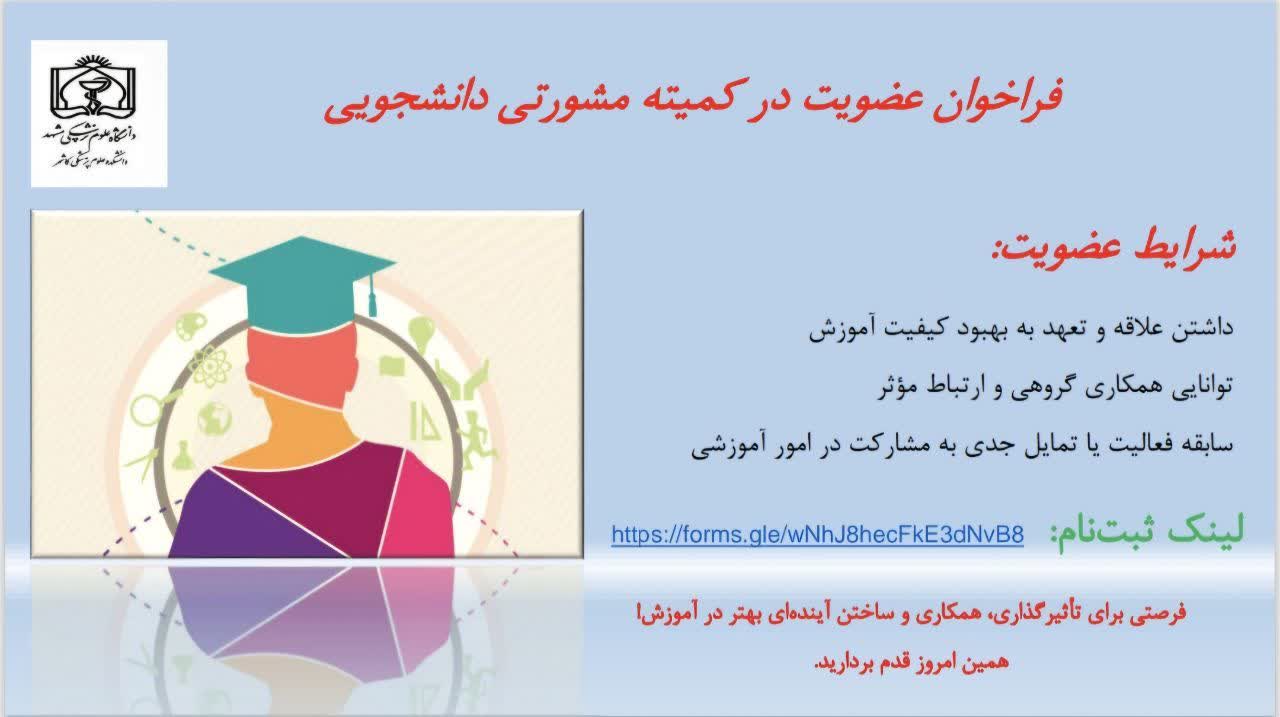 اطلاعیه 30 مهر 1404 امتیاز: ( 0 Rating ) فراخوان عضویت در کمیته مشورتی دانشجویی امتیاز کاربران لطفا رای دهید رای 1 رای 2 رای 3 رای 4 رای 5 https://forms.gle/wNhJ8hecFkE3dNvB8 لینک ثبت نام 30 مهر 1404 بازدید: 43 امتیاز: ( 0 Rating )