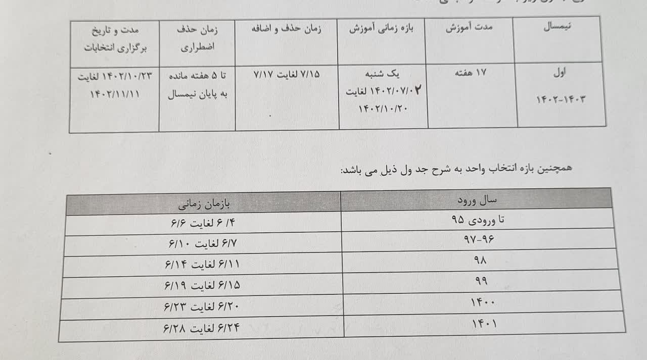 اطلاعیه 18 شهریور 1402 امتیاز: ( 0 Rating ) نیم سال اول تقویم دانشگاهی1403-1402 امتیاز کاربران لطفا رای دهید رای 1 رای 2 رای 3 رای 4 رای 5 تقویم دانشگاهی 1403-1402 13 آذر 1402 بازدید: 305 امتیاز: ( 0 Rating )